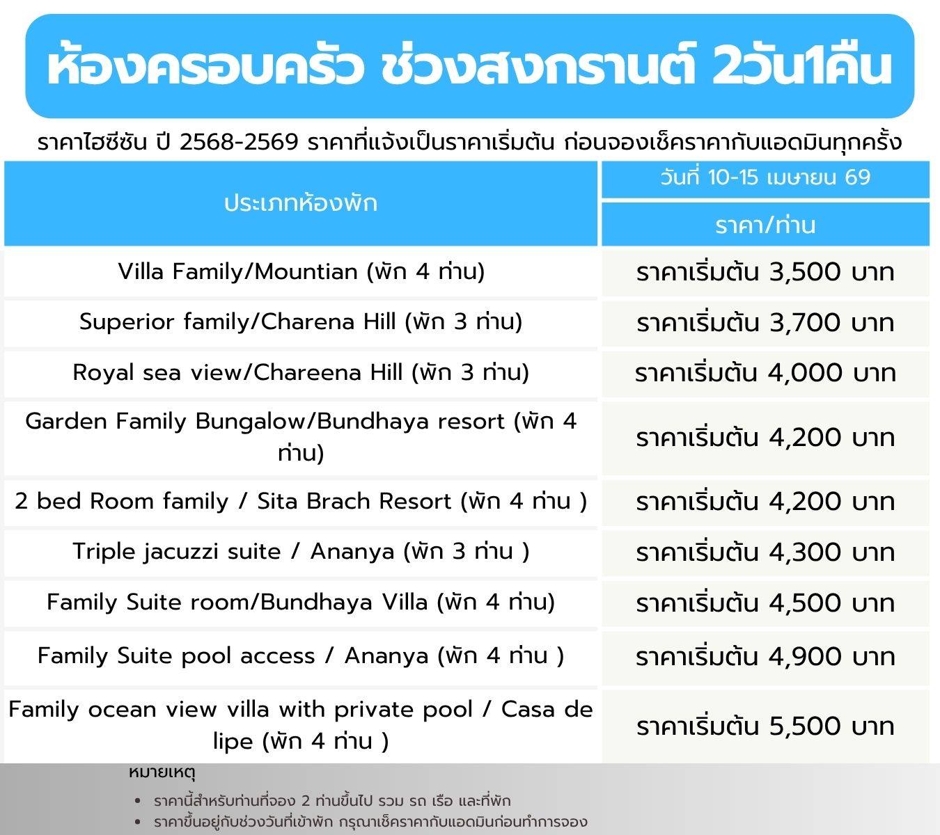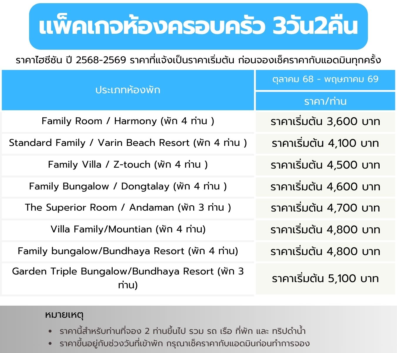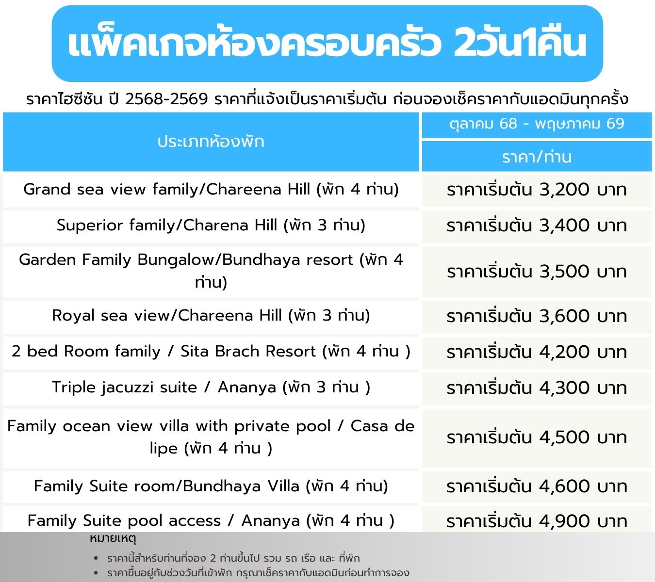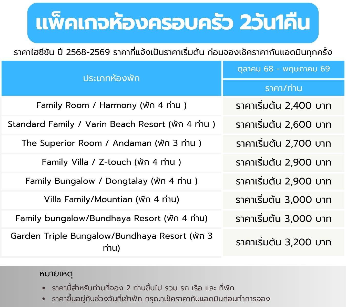 ห้องแฟมมิลี่ เกาะหลีเป๊ะ ช่วง ไฮซีซัน 2568 – 2569