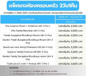 รวมที่พักห้องแฟมมิลี่ สำหรับ 3-4 ท่าน เกาะหลีเป๊ะ