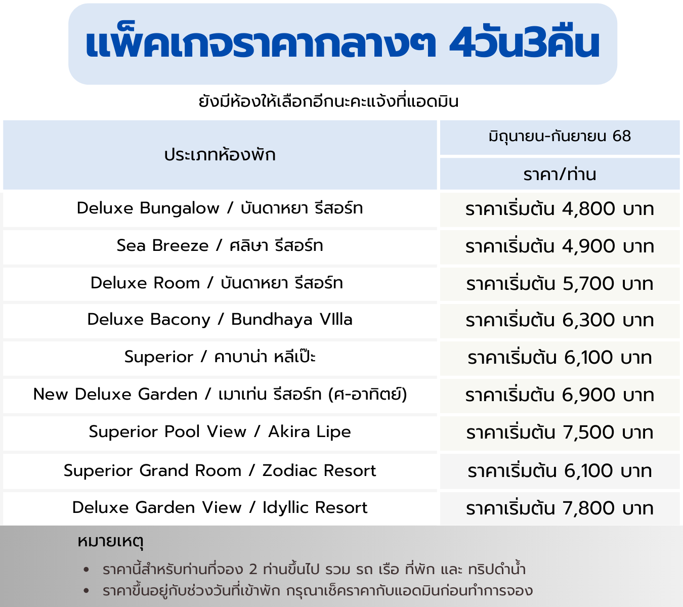 รวมแพ็คเกจ 4วัน3คืน