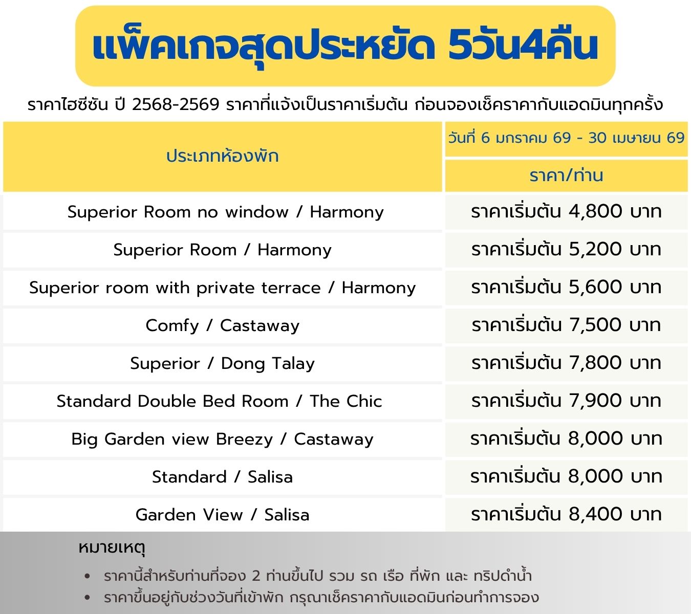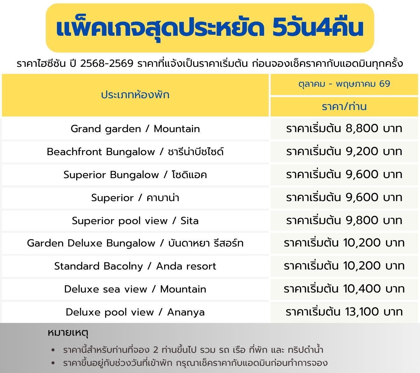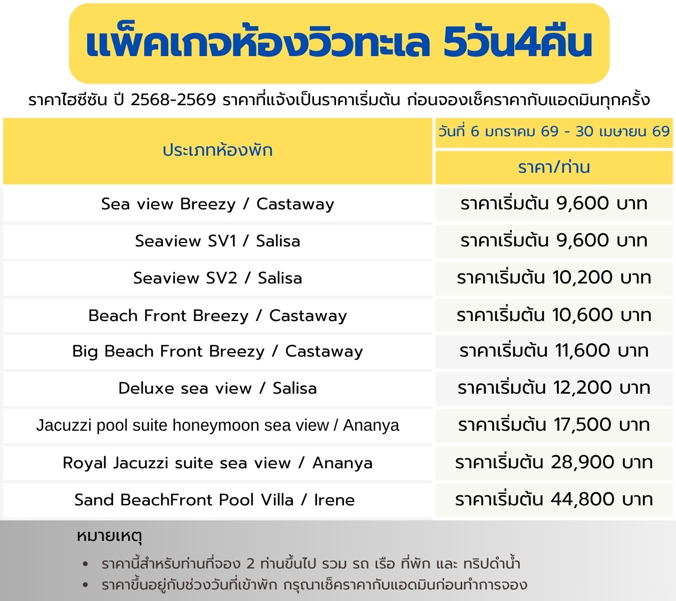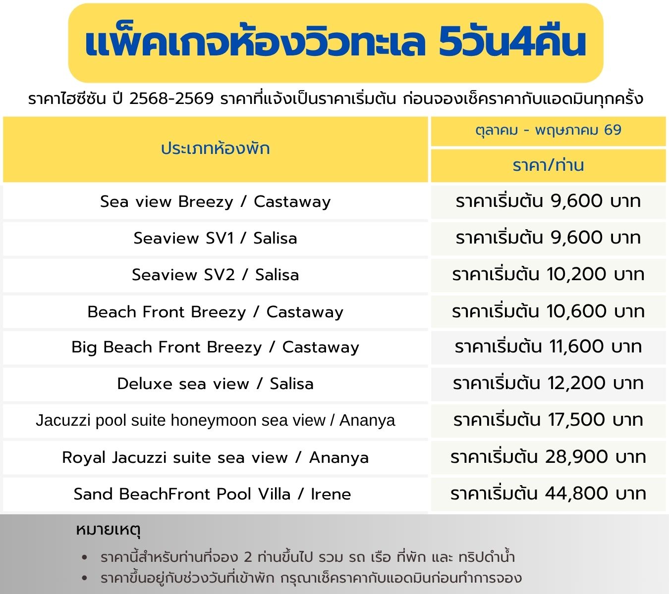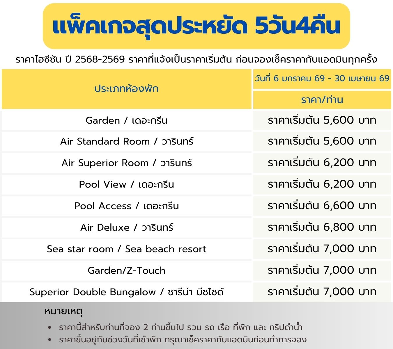 แพ็คเกจแนะนำ 5วัน4คืน เกาะหลีเป๊ะ